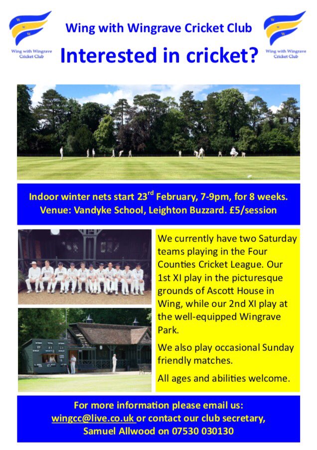 Willetts 70 helps Great Horwood to opening day win 2nd. Four Counties Cricket League A village Cricket league of seven divisions across Bedfordshire and Buckinghamshire. Buckland Aston Clinton CC IIs beat St Andrews CC.